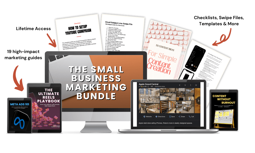 Introducing The Small Business Marketing Bundle... the first of its kind tailored to small businesses - with high impact resources built to kick start your growth without the overwhelm.